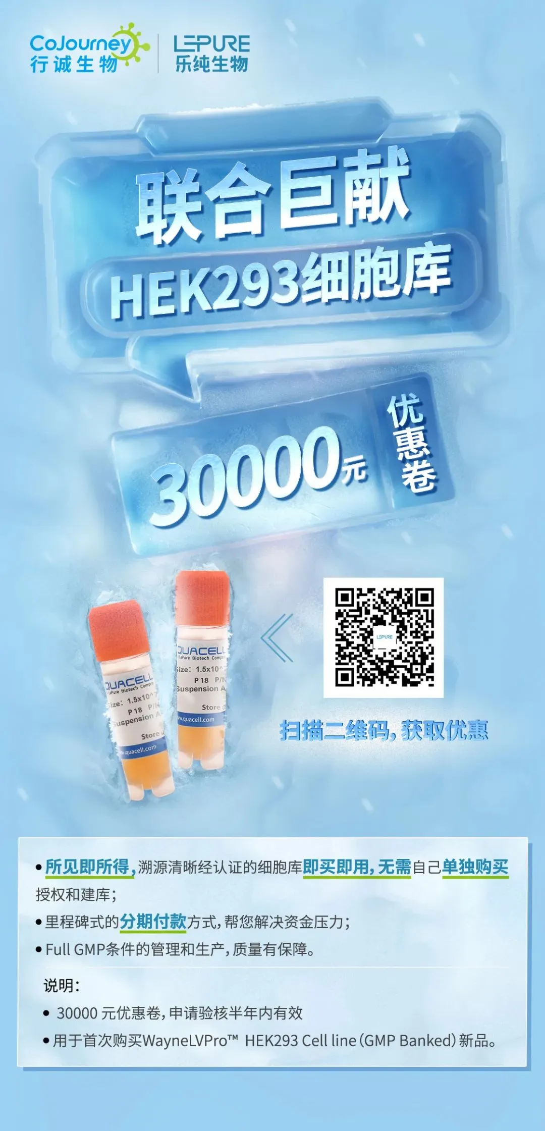 近日,行诚生物作为专业的基因和细胞治疗CDMO为赋能行业,帮助Biotech企业在购买授权和建库的工作中简化流程并节省费用,与 HEK293 细胞株大中华区独家 Sub Liecense 授权服务商康晟生物(QuaCell,乐纯生物旗下细胞培养品牌)合作发布了GMP版本即用型HEK293细胞库产品,帮助Biotech企业应对CLD应用以及未来IND申报中对于细胞系溯源性的法规要求的挑战。