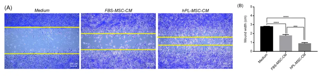 图3. HPL 与 FBS 培养条件下 MSC 的细胞划痕实验比较7