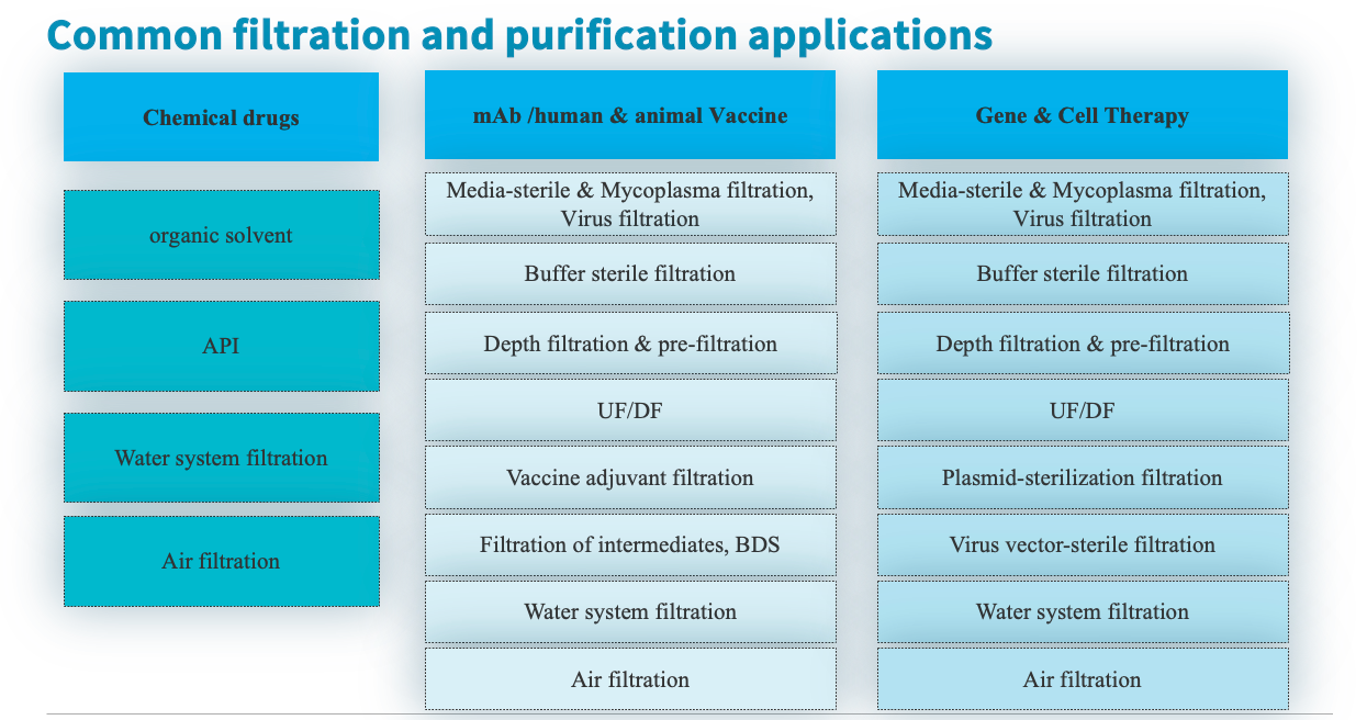 图2. 制药行业中的各种纯化过滤工艺步骤