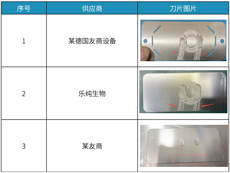 表3—刀片接触面对比