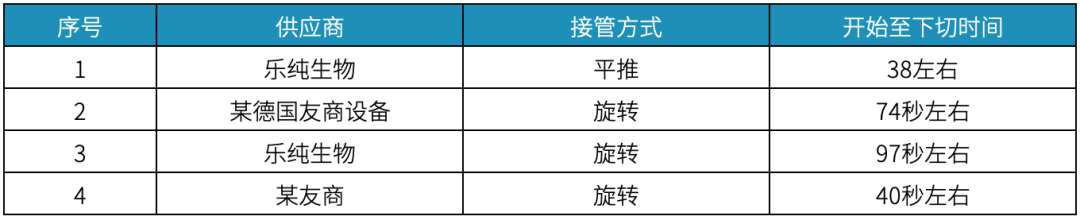 平推式无菌接管机由于刀片尺寸较小,发热区域高度集中,通常在约 40秒 内即可完成有效的杀菌和除热源步骤,并进入切管阶段。而旋转式无菌接管机因结构设计不同,其刀片升温及灭菌周期相对更长,常见某德国友商设备在约 74秒 左右完成杀菌和下切。