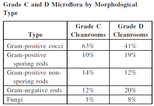 洁净区中革兰氏阴性杆菌的比例指示水源污染程度。在D级洁净室中,革兰氏阴性杆菌占20%。这也反映了在这些区域水槽较多。若在AB洁净室中革兰氏阴性杆菌的比例较高,应引起重视。可能与洁净室湿度设置过高有关。