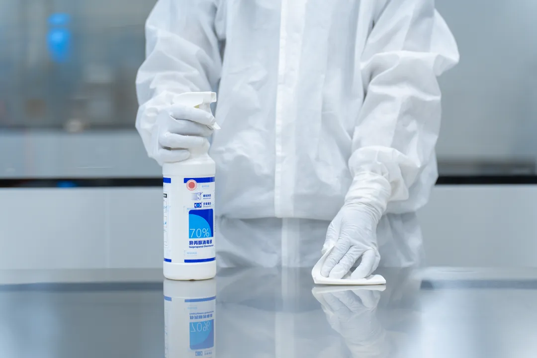 醇类消毒剂,尤其是 70% 异丙醇可作为清洁剂及残留去除剂使用。例如使用了杀孢子剂或较高残留消毒剂(酚类、季铵盐类等),可以使用70%异丙醇进行擦拭去残留,确保残留物最大限度被去除。