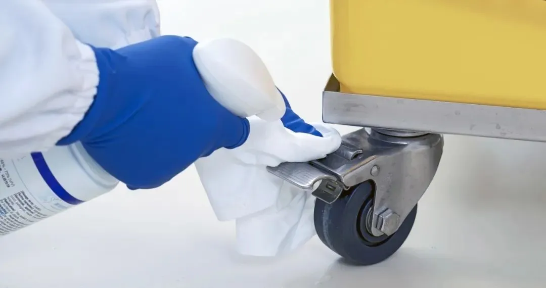 对于经常在不同房间来回穿越的仪器设备,例如推车、粒子计数器、浮游菌采样仪等,可能会成为污染物引入的主要来源,因此清洁消毒应更加频繁,对于A/B级环境监测用仪器设备应专用,不宜与其他区域共用。跨级别转运时,每次应进行清洁消毒,如B级转移到A级层流下使用,应使用消毒剂进行擦拭。
