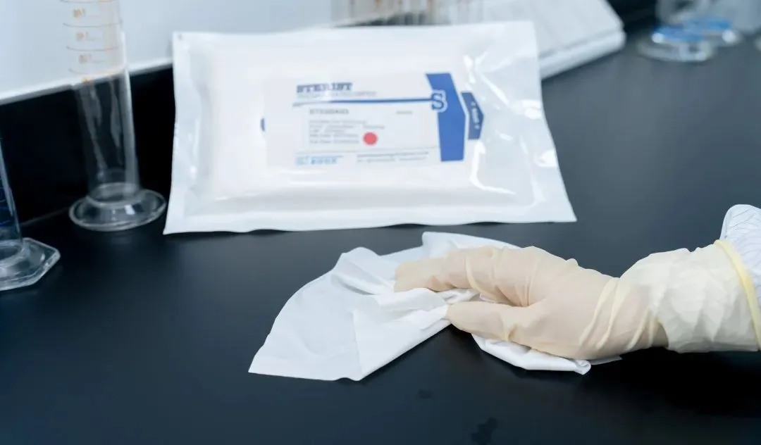 - 擦拭布应一次性使用,建议使用预浸渍擦拭布,重复清洗使用的话可能会导致交叉污染。在擦拭布选型时应关注擦拭布的材质和洁净度,湿热灭菌后不能有颗粒脱落和纤维脱落。