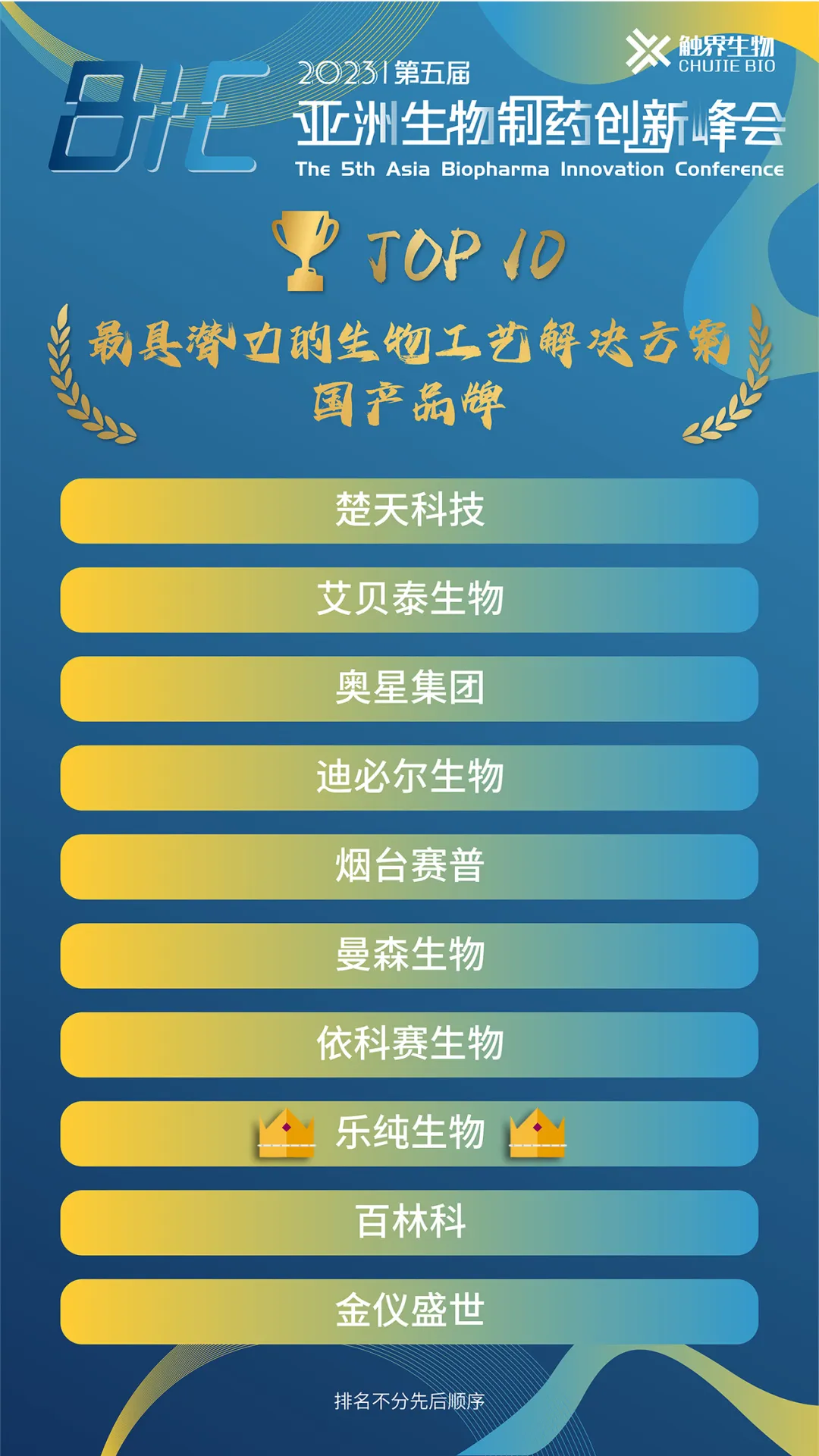 近期乐纯生物在2023年BIC Awards亚洲生物制药创新峰会中再添荣誉,获得了“最具潜力的生物工艺解决方案国产品牌”奖项,在此我们表示对媒体及业内同仁认可的诚挚感谢。