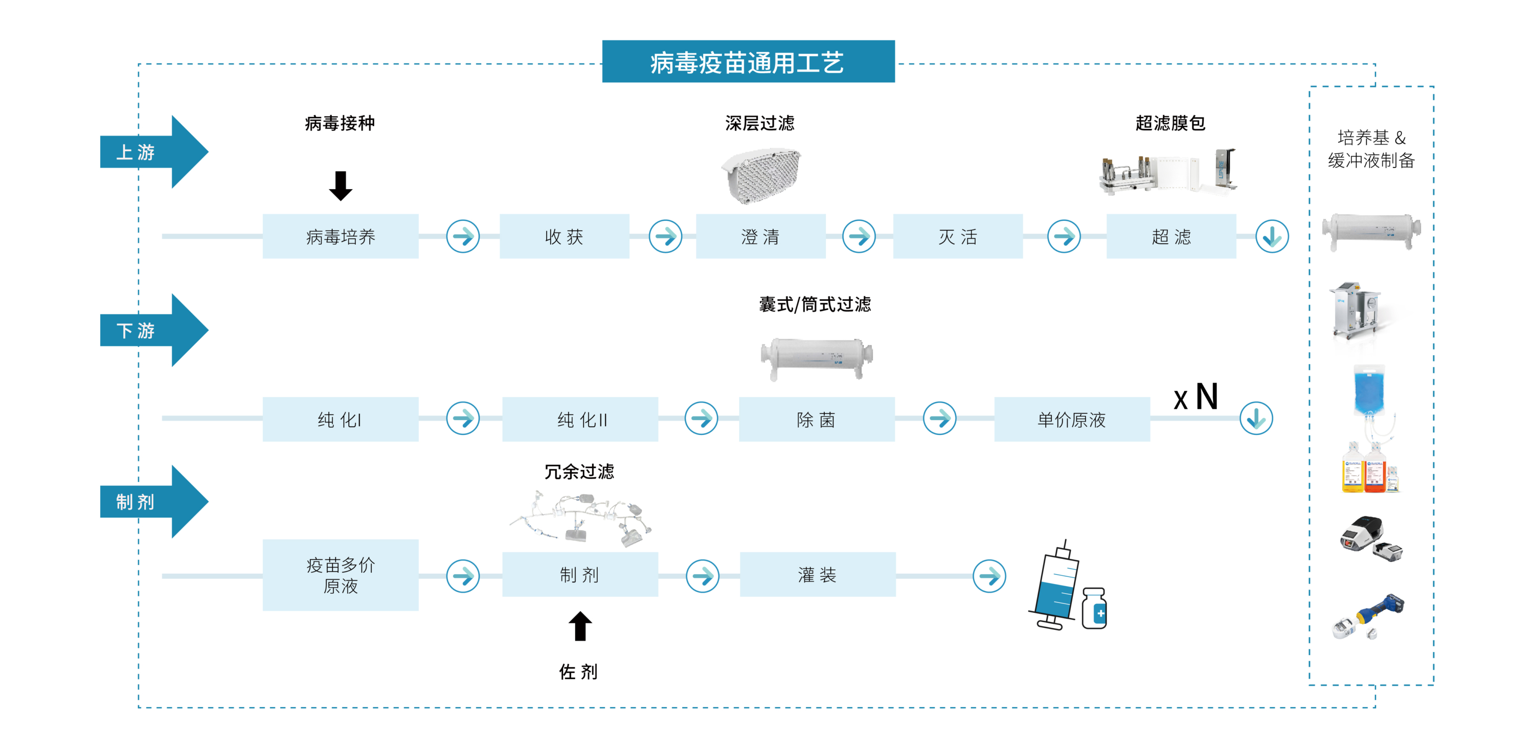 从病原体培养到终端无菌过滤,乐纯生物为人用疫苗生产提供全流程高效可靠的过滤与纯化解决方案。