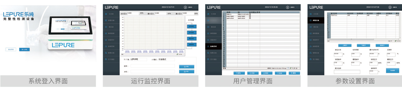 一次性袋子完整性检测仪的控制系统由西门子PLC与PC工业电脑组件组成,具备密码安全管理、权限控制、报警功 能、审计追踪和批次报表等功能。数据支持PDF导出,符合21CFR Part 11法规要求,确保操作的安全性和合规性。