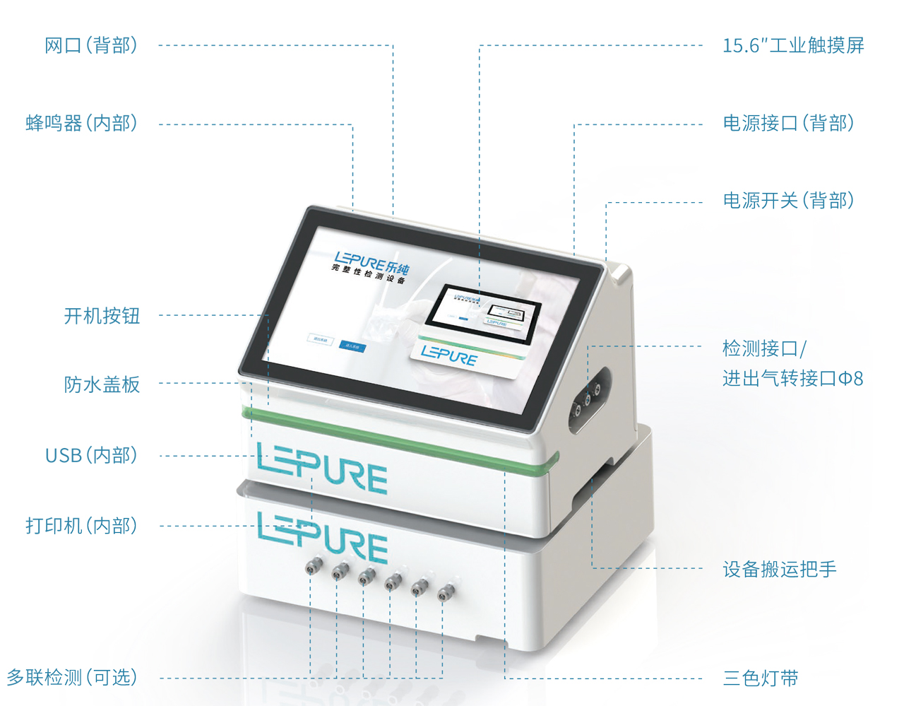 - 内置检测工艺,支持乐纯生物全系工艺袋扫码调用,可检测30μ及以上漏孔