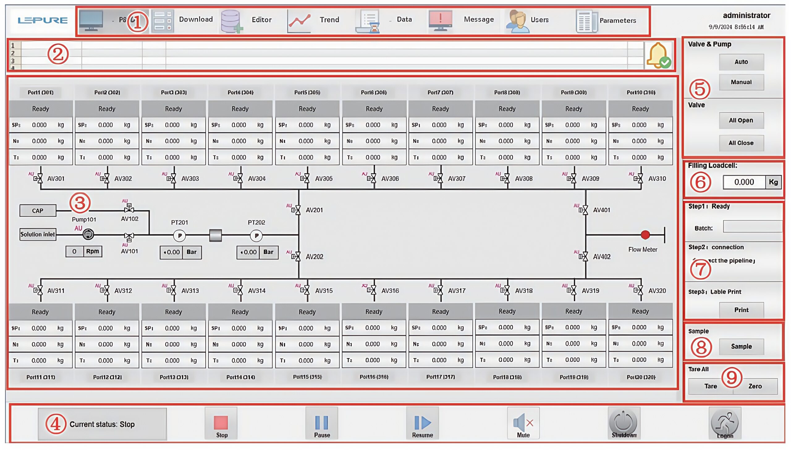 - 高精度分装:采用高精度蠕动灌装泵与高精度台秤,分装精度可达 ±2%FS,充分满足严苛的生产要求。