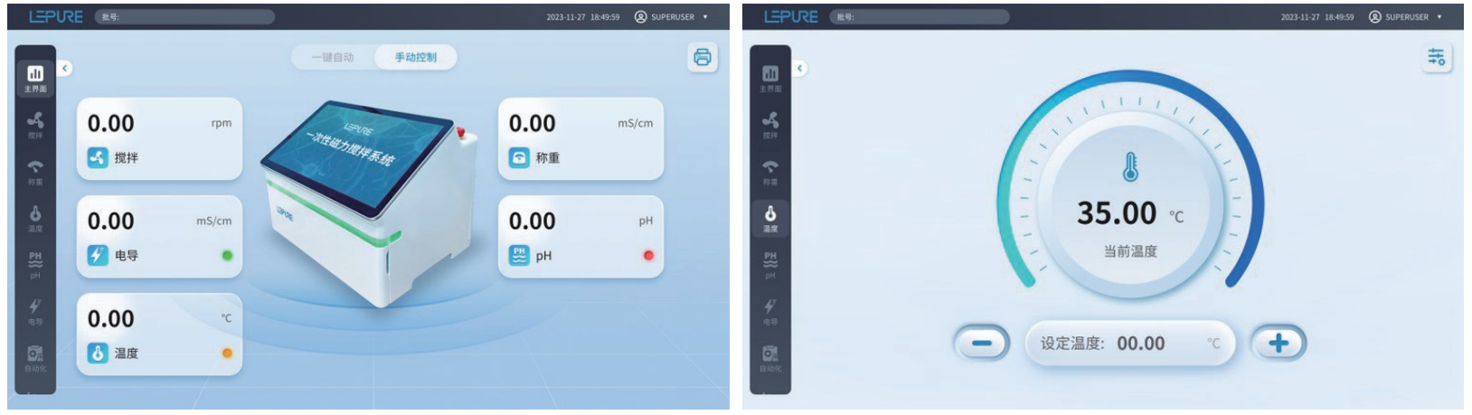 - UI界面:分层菜单设计,实时显示搅拌速度、温度、pH/电导率曲线及重量数据