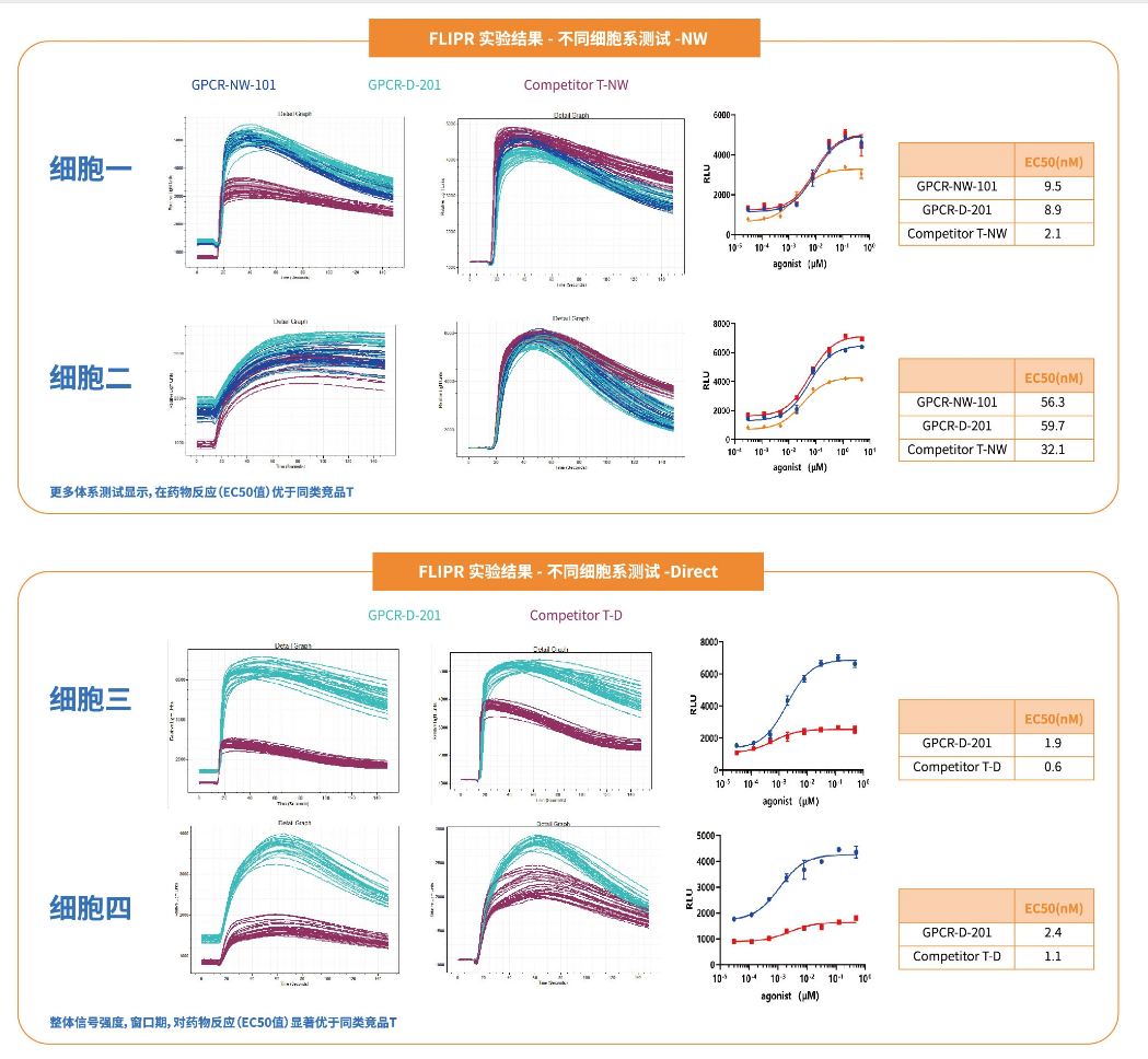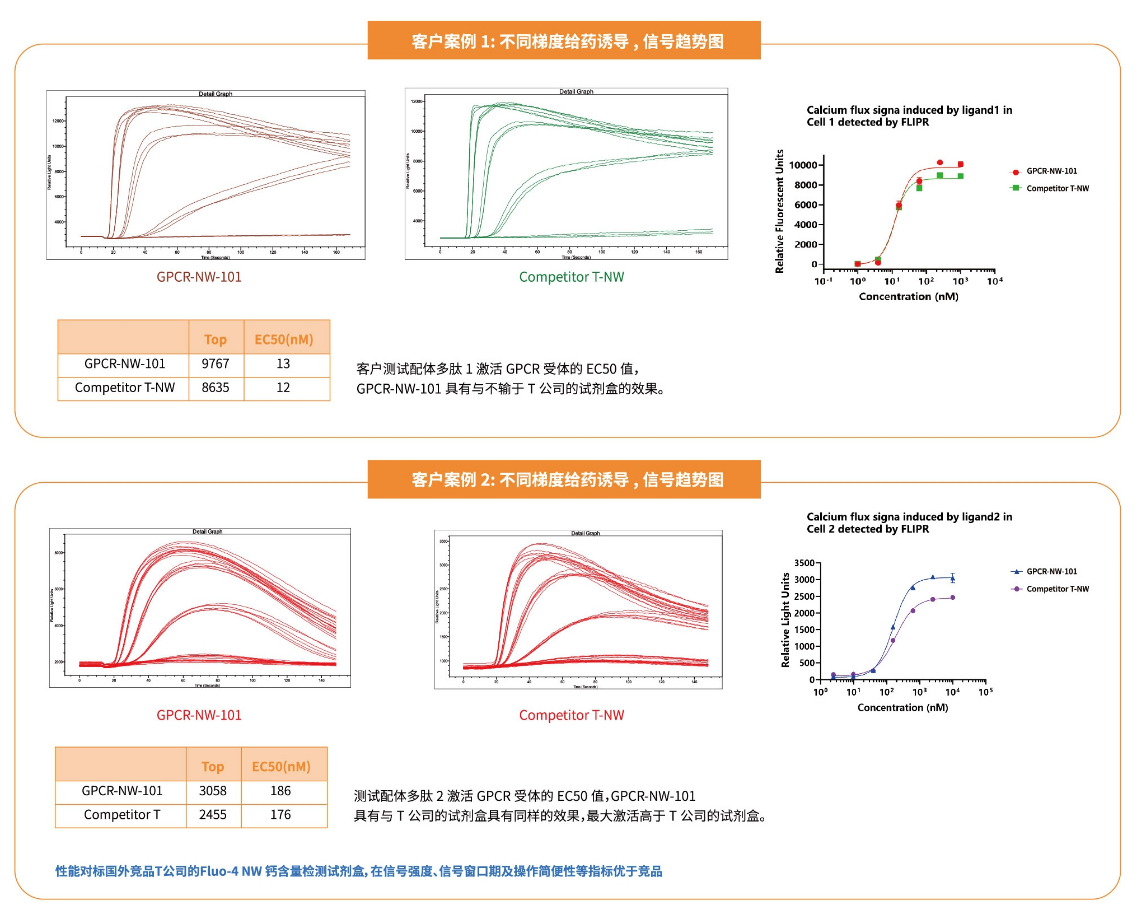 | 指标 | 儒百生物(GPCR-D&GPCR-NW) | Fluo-4 NW | Fluo-4 Direct |