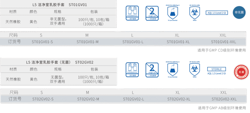 L5洁净室乳胶手套(双手通用)AQL 1.5