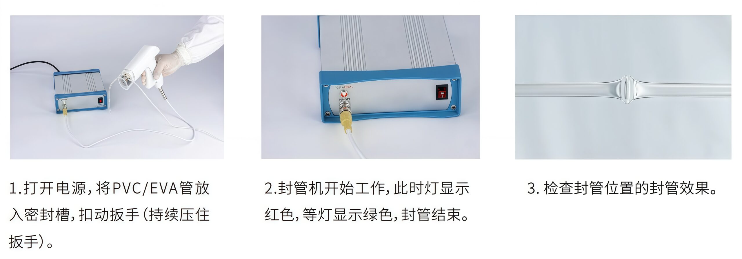 - 随时可用:无自检,开机即用外径:3mm~ 8mm的PVC/EVA管路,可直接进行封管