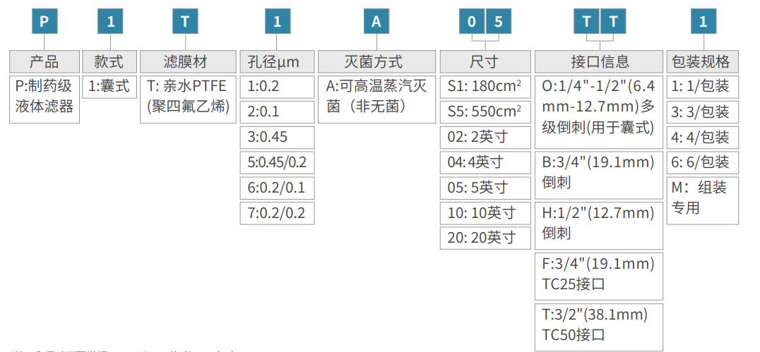 1.货号中各字母及数字代表特定含义,此编码规则仅作说明,并非所有组合均可构成有效产品型号。