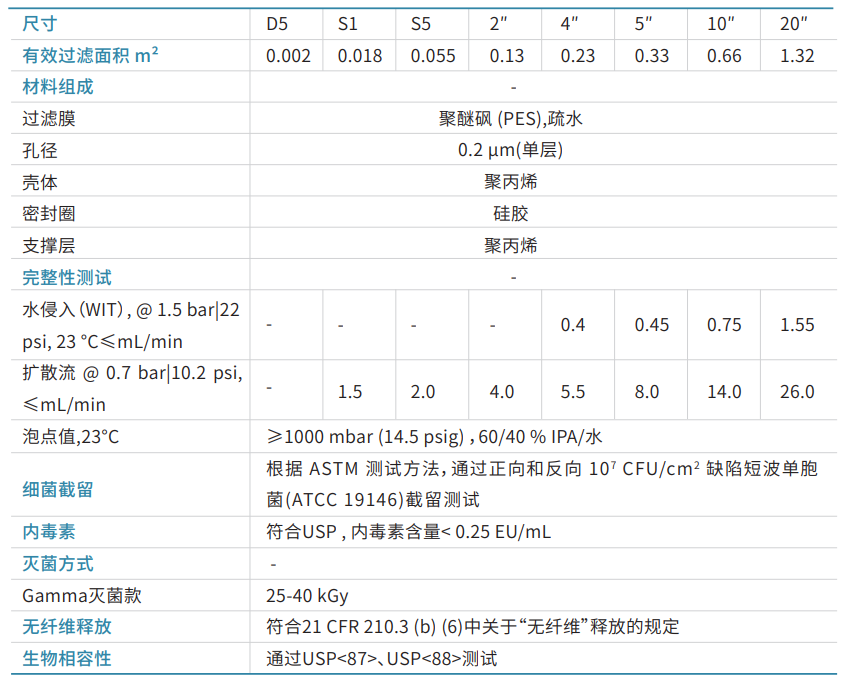 众所周知,疏水 PES 膜比疏水 PVDF 膜通气性好,且PES膜材对于 Gamma 的耐受性比 PTFE 稳定,特别适合需要辐照灭菌情况下的空气除菌应用需求,如一次性培养系统。