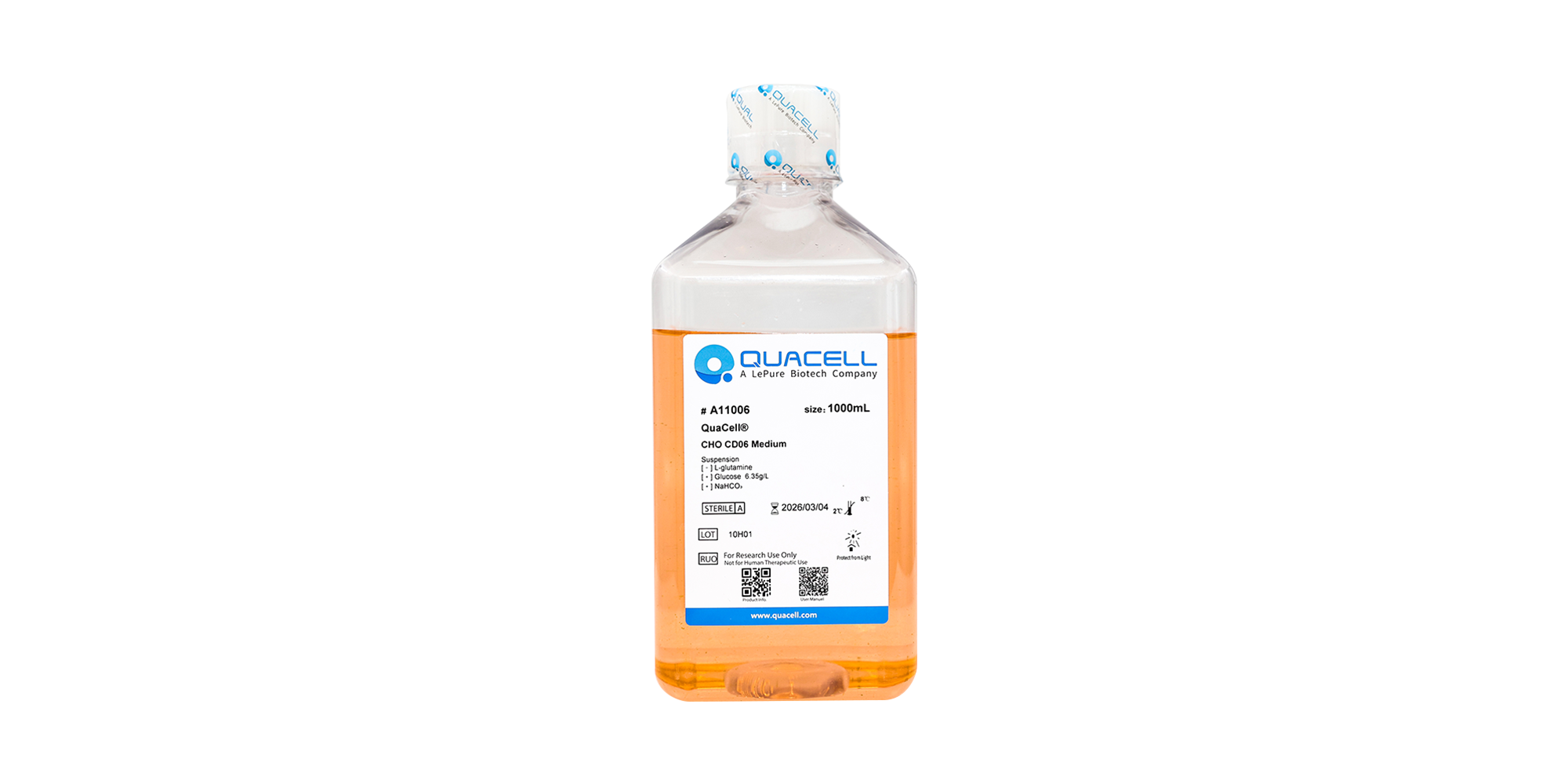 QuaCell® CHO CD06培养基可为中国仓鼠卵巢细胞 (CHO细胞) 的高密度增殖提供丰富的营养成分。此产品是一款无血清、无动物成分、化学限定培养基,适用于悬浮培养 CHO 细胞以表达抗体及蛋白产物,可以显著提升细胞生长后期的密度和活率。