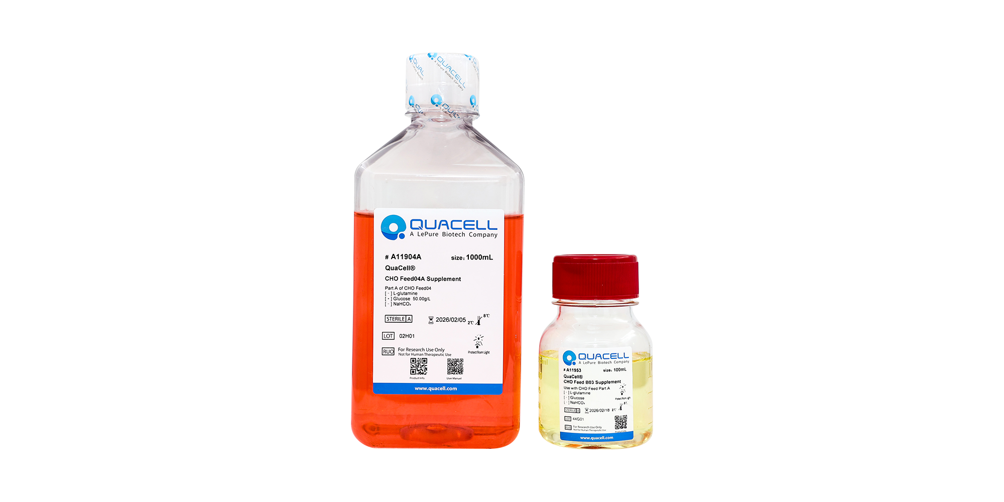 QuaCell® CHO Feed04 补料培养基是一款无血清、无动物成分、化学限定补料培养基。此产品可为悬浮培养后期的 CHO 细胞活性维持提供必要的营养成分,维持细胞活率,延长培养时间,加入可以显著提升悬浮培养体系中 CHO 细胞密度和蛋白表达量,为提高表达量首选。